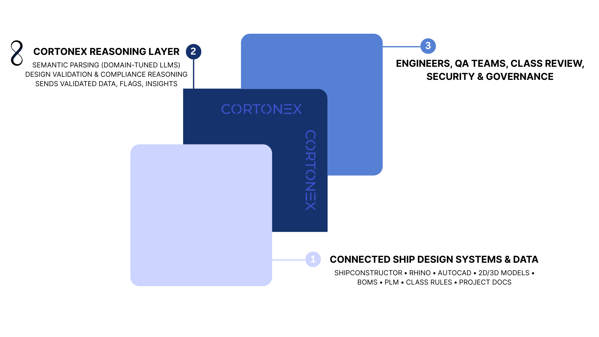 The full Cortonex platform evolves into a complete AI validation and reasoning system for ship design and engineering teams.